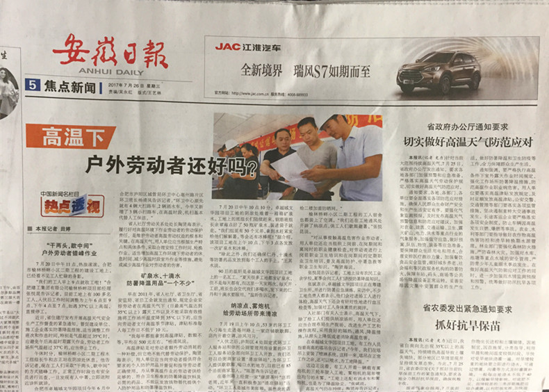 安徽日報、新華網(wǎng)等——高溫下,戶外勞動者還好嗎?