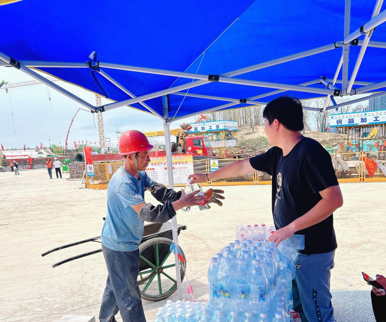 面對持續(xù)不斷的高溫天氣,做好后勤保障確保安全生產(chǎn)是項(xiàng)目建設(shè)的關(guān)鍵。建工三建組織開展“夏送清涼”活動(dòng),發(fā)放仁丹、綠豆、西瓜等防暑降溫物資,開展夏季防暑專項(xiàng)培訓(xùn),傳授夏季防暑基本知識(shí)、應(yīng)急措施等。加強(qiáng)員工關(guān)愛,豐富員工業(yè)余生活,定期開展交心座談會(huì),了解員工實(shí)際問題,解決員工實(shí)際困難,不斷提升員工幸福指數(shù)。