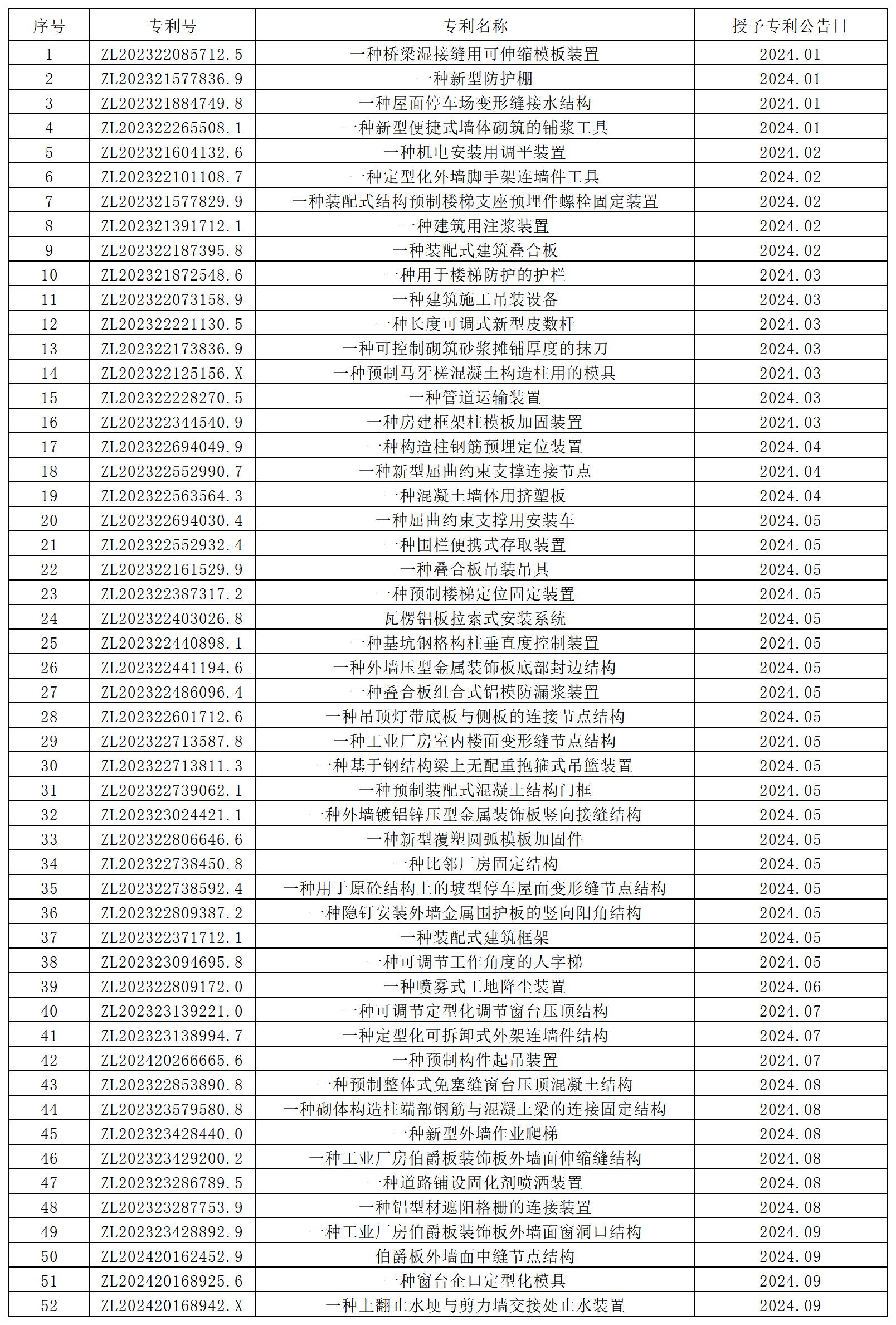 2024年公司授權(quán)實(shí)用新型專(zhuān)利52項(xiàng) 發(fā)布時(shí)間:2024-10-14 來(lái)源:工程建設(shè)研究院 撰稿人:徐冬 瀏覽次數(shù):2238 2024年公司授權(quán)實(shí)用新型專(zhuān)利52項(xiàng)。
