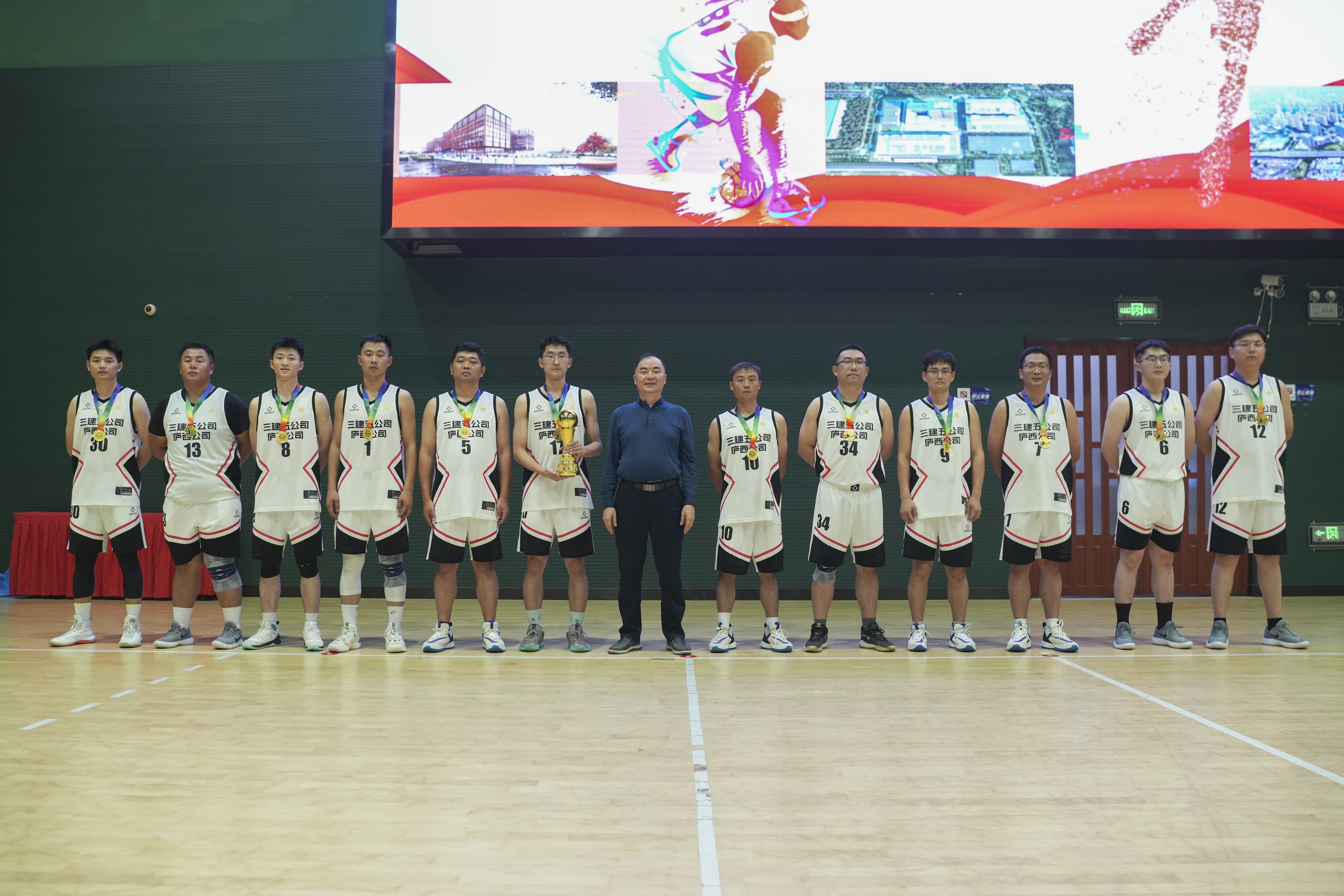 自11月13日開賽以來,14支參賽隊在籃球場上配合默契、意氣風發,既有力量技巧的角逐,又有智慧協作的比拼;既有個人技術的高光時刻,也有團隊作戰的默契配合。他們全力以赴,那充滿力量的跳躍、犀利的突破、精準的投籃,無不展現出建工三建籃球健兒的實力與風采,以及對籃球純粹的熱愛。場上活力全開,場下熱血沸騰,歡呼聲、吶喊聲、助威聲此起彼伏,賽場的熱度持續推向高潮。決賽中,五分公司代表隊、十二分公司代表隊聯袂呈現一場精彩的比賽,隊員們個個激情滿懷,斗志高昂?;@球場上熟練地運球、默契地傳球、精準地投球,籃筐下你爭我奪、你攻我守,相互比拼著技術和實力,引來觀眾們鼓掌吶喊。在比分落后的情況下,雙方仍每球必爭,決不言棄,真正比出了風格,賽出了水平。