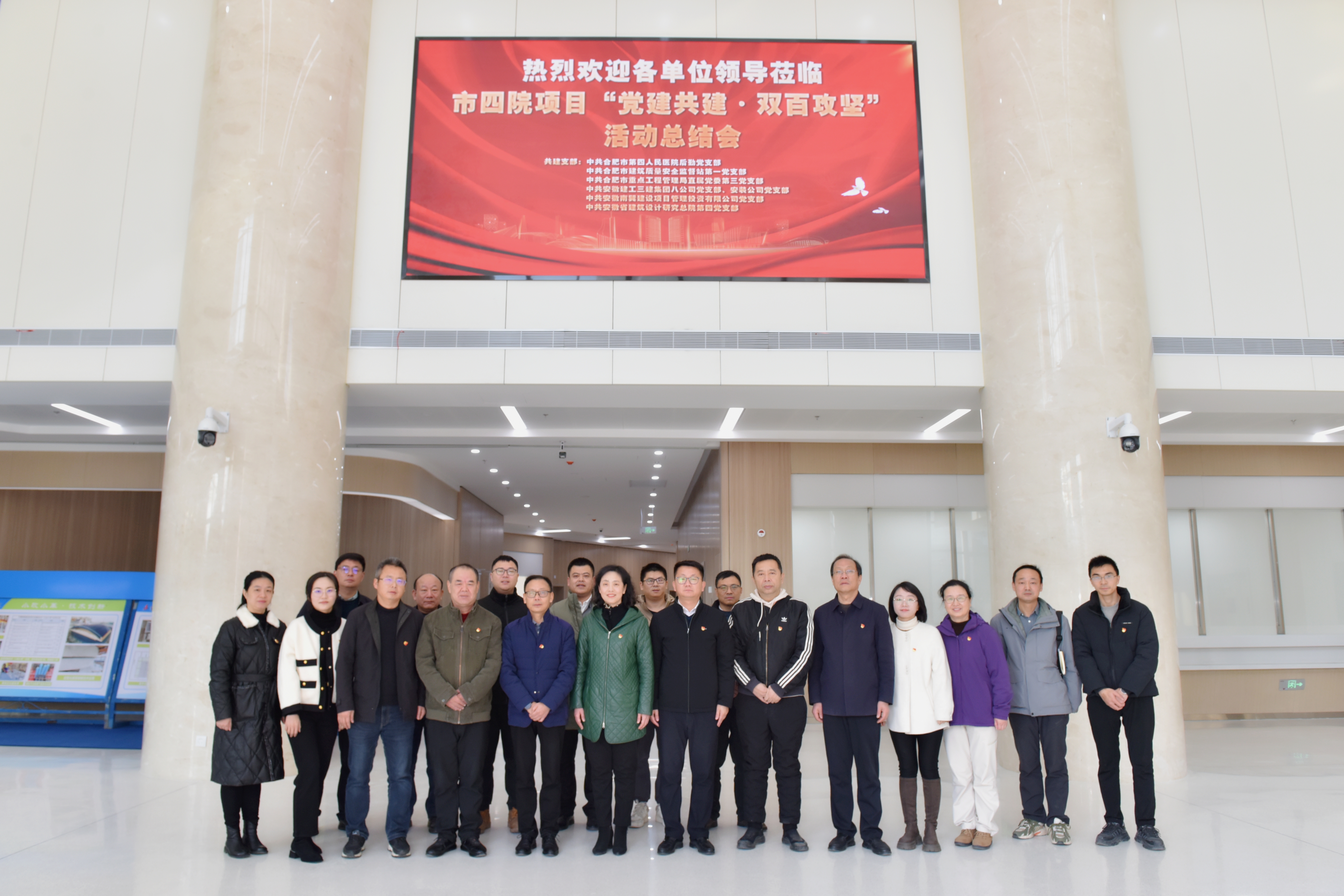 12月31日上午,合肥市第四人民醫院康復住院樓項目舉辦“黨建共建·雙百攻堅”活動總結表彰大會,并給我公司頒發感謝信和錦旗。合肥市第四人民醫院黨委書記牛伶、合肥市建筑質量安全監督站站長杜德平、合肥市重點工程建設管理局公益分局局長唐歡、安徽南巽監理公司黨支部書記張杏梅、安徽省建筑設計研究總院股份有限公司四院院長汪洋、建工三建黨委委員、副總經理張志剛等參加。