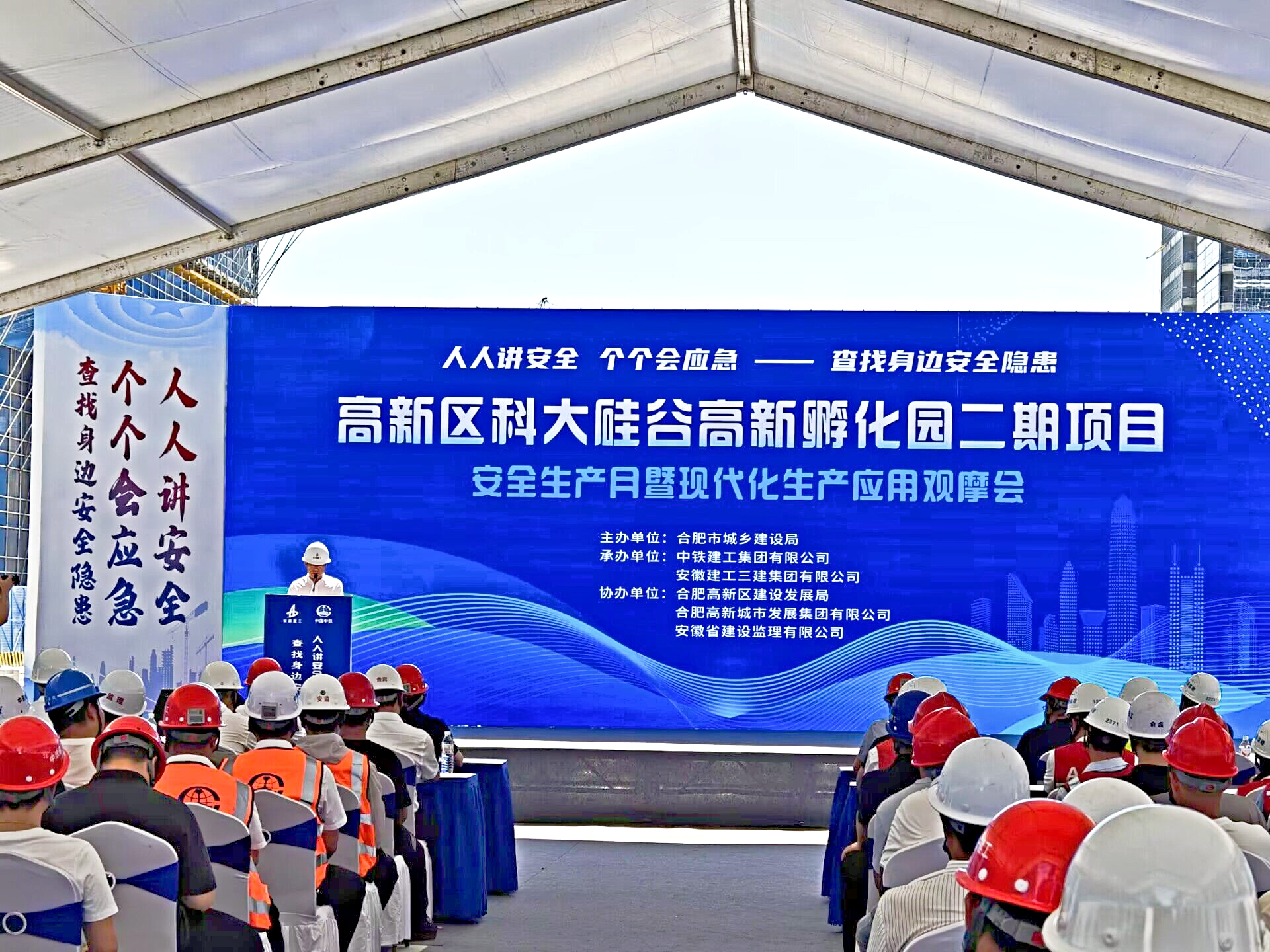 合肥市高新區(qū)建筑工程領域“安全生產(chǎn)月”暨現(xiàn)代化生產(chǎn)應用觀摩會在阜陽分公司高新區(qū)科大硅谷孵化園二期項目舉行。