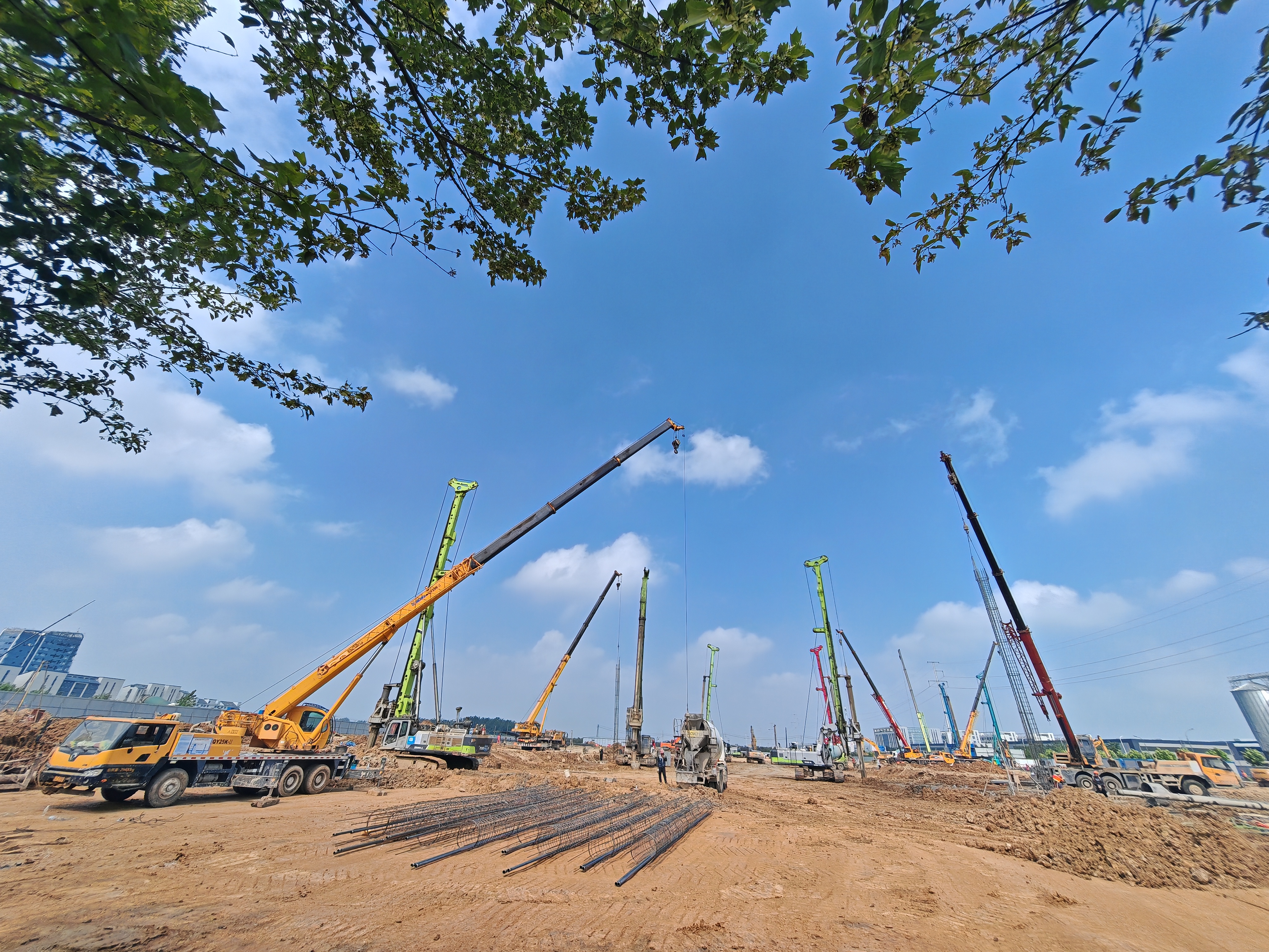 自啟動以來,面臨工期緊、任務重、標準高多重考驗,項目團隊發揚 “特別能吃苦、特別能戰斗”的企業作風,在攻堅中展現硬核執行力。面對1246根工程樁的施工任務,樁基分包招標剛完成,項目便在48小時內統籌協調8臺打樁機同步進場,以高效執行贏得建設單位的充分認可。打樁機進場后,現場管理人員實行科學高效的輪轉作業模式,晝夜奮戰,克服梅雨季節潮濕、高溫天氣等不利影響,僅用35天就完成1246根(總米數29664米)的水下混凝土灌注樁澆筑,實現產值約1750萬元。